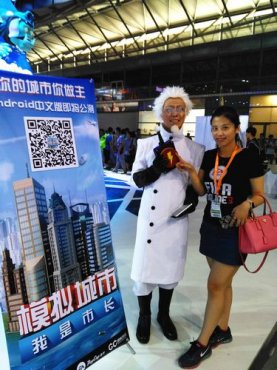 2015年ChinaJoy游戏展会终于在玩家的期待声中隆重开幕,全球顶尖游戏公司EA的展台依旧如往年一样引发与会参观者的关注热潮,而本次除了大量热门游戏的展示之外,展台上还迎来了一位神秘的客人。他一头白发,满脸皱纹,却神气十足,古灵精怪,右手持着夸张的遥控器,左手拿着游戏IPAD,奇葩之余也引来无数观众的目光和热拍,他究竟是什么人物呢?在什么游戏里出现过?最后一名现场的EA美女工作人员道出玄机,原来这个COSER的名字叫“胡博士”(Doctor Vu)。