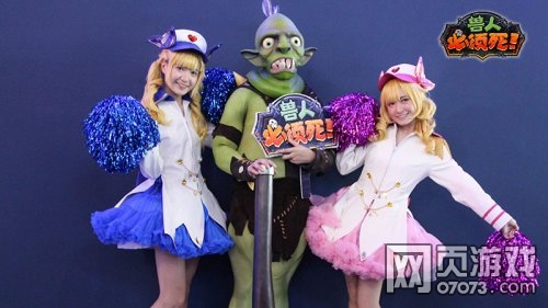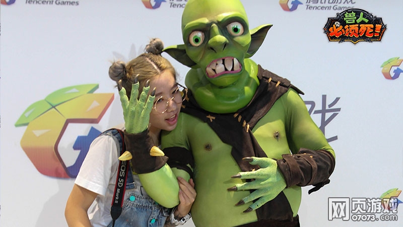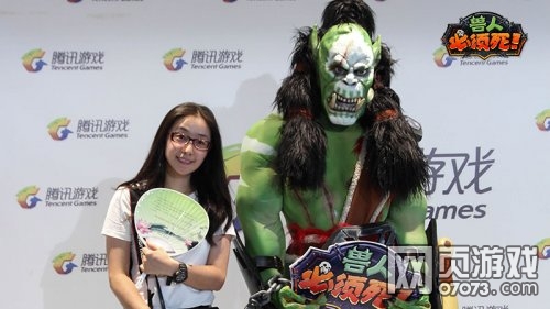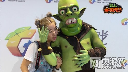 《兽人必须死》参展CJ2015,除了发布全新PVE无尽模式和即将带来精彩的明星战队对抗表演外,现场还有Coser扮演呆萌兽人,供现场人士合影留恋。Coser扮演的兽人还原度极高,其中有一套服装还特别模拟了安娜的魅惑技能,在眼睛处可贴上爱心饰物。合影时可以让coser对你两眼冒爱心,别有一番趣味。