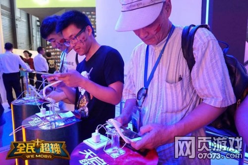 相比MOBA端游来说,《全民超神》作为手机游戏,在保证MOBA玩法纯正的同时,对操作进行了一定程度的简化,让每一个接触的人都能轻松上手。这不,一位头发胡子都泛白的大爷就来到了现场,虽然刚开始有点慌乱,称没玩过这种游戏。但在游戏引导员耐心的引导下,大爷很快就进入了状态,玩得不亦乐乎,丝毫不逊色时尚男女。而且大爷也和时尚男女一样有颗青春的心,脸上还贴了“爱生活爱游戏爱超神”的图腾,就是那么年轻有活力!
