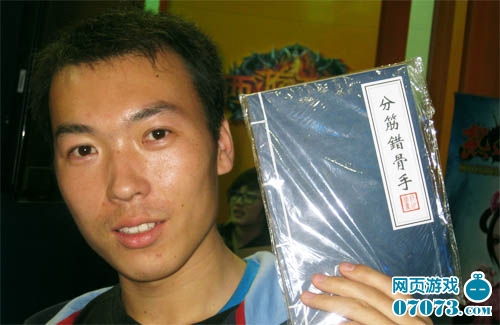 经了解,事发原因是这样的:此男子在中国网页游戏第一平台51wan展台拿到工作人员发放的礼品——武功秘籍《分筋错骨手》之后,就像得到了宝贝一样,激动不已,以至于突然情绪失控,竟然不顾旁人的目光,当场就开始了自己的修炼。由此推测,此男子应该是一位中国功夫爱好者。
