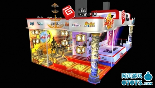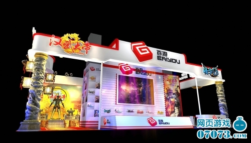 今年,百游展台位于北京展览馆9-06展台,整个展台以百游logo的红白色调为主色调,同时以《汉武大帝》西汉时代古典风格做点缀,打造出一个古今元素完美结合的时尚展台。超大型LED显示屏设立在舞台后方,届时,百游将向广大玩家展示旗下各个产品的大型宣传视频,让每一个现场玩家都能了解游戏的最新动态。
