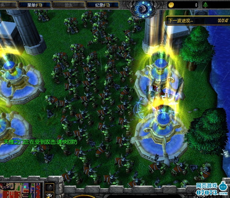 然后立刻攻击基地,你会看到什么??英雄啊的一声,挂掉啦!!那是必然的事,但英雄重生后你会发现,英雄全属性+50点。根据无界变幻III的3大技能之一的属性强化技能的第一招,死多几次完全能在第一关的怪走下来之前刷个两三百属性,对开局很有帮助!
