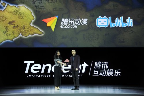 邹正宇首先宣布的是与著名弹幕视频网哔哩哔哩(以下简称B站)的合作,未来两年腾讯动漫与B站将会联合出品至少20部动画。第一批包括《银之守墓人》、《山河社稷图》等重点IP,双方将联合营运版权,在宣发运营、衍生品开发、线下活动、游戏联运等方面深入合作。