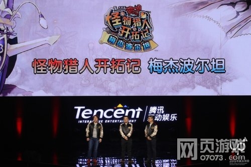 腾讯互动娱乐合作产品部副总经理黄凌冬、CAPCOM亚洲事业部副部长越知雄一、《怪物猎人OL》制作人陶尉时在发布会上宣布《怪物猎人OL》将于4月21日开启内测,同时公布“怪物猎人大IP战略”,涵盖客户端游戏《怪物猎人OL》、网页游戏《怪物猎人开拓记·梅杰波尔坦》(以下简称《怪物猎人开拓记》)、移动端APP应用“掌上狩猎部APP”内容。
