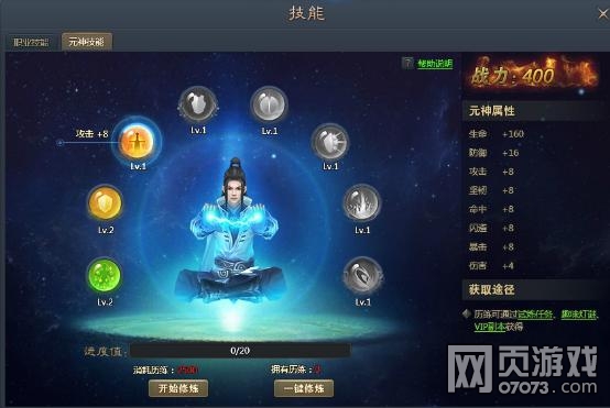 2、元神技能每次升级需要消耗历练值,历练值可通过试炼任务、副本、日常活动获得。