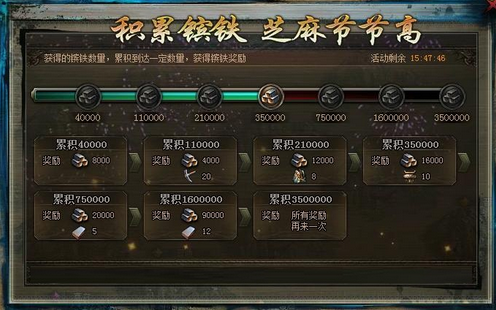 2.活动期间玩家累计获得镔铁数量达到每个奖励档次均可获相应的镔铁奖励和道具奖励。