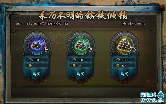 游戏大厅 > 战争策略 > 征战四方2 > 新闻公告 > 征战四方2镔铁倾销超值镔铁限量抢购
