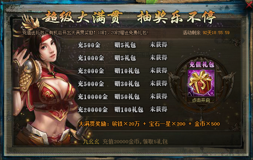 3、 开启礼包有机会获得宝石、镔铁等奖励,更有机会开出金币奖励。