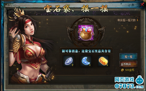 3、 活动期间玩家还可通金币购买摇一摇,每次获得宝石袋中所有宝石,每天购买次数为10次。