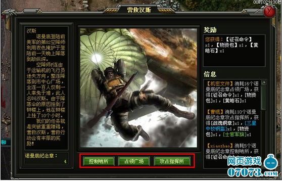 闯关控制哨所、占领广场和攻占指挥所分别需要5个、16个、110个诺曼底纪念章,所需纪念章越多,获得的奖励也越高,所以完成“攻占指挥所”能获得更多、更好的奖励。