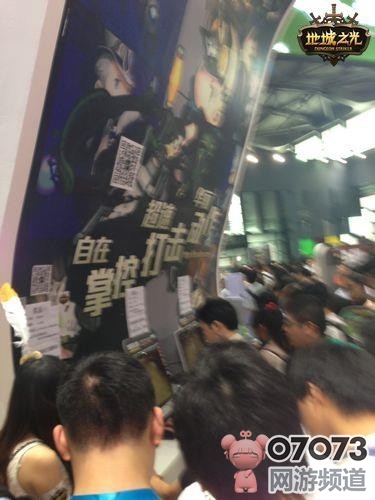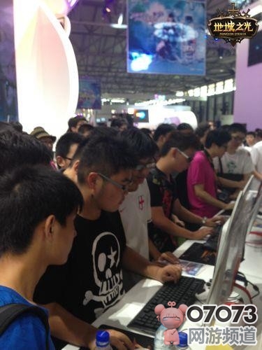 随着人潮流动的方向放眼望去,最拥挤最热闹的区域一目了然。是的,黑压压的人头攒动,兴奋开心的语调不断——这里就是《地城之光》位于盛大游戏主舞台左后方的试玩区。
