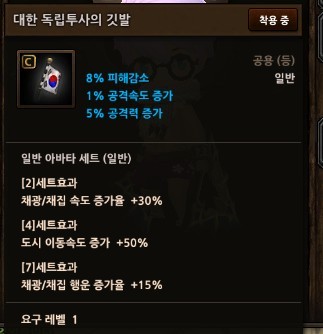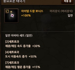 可以领取2个任务,1个任务是直接获得1个下面那样的韩国旗帜头饰(3种效果任选,不是脑残的都会选爆率+100%),有效期是1个小时,目测该任务每天可以领1次(强化粉要掉价了)