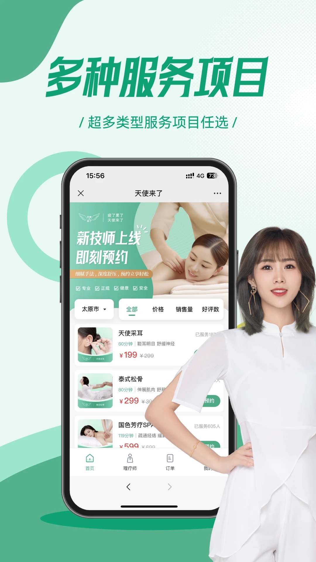 天使来了APP是一个专注于健康护理的专业服务平台,汇聚了多种优质服务项目,让用户能够轻松在线选择。平台拥有经验丰富的专业理疗师团队,为您提供安全可靠的上门服务,只需一键预约,即可享受贴心周到的护理体验。