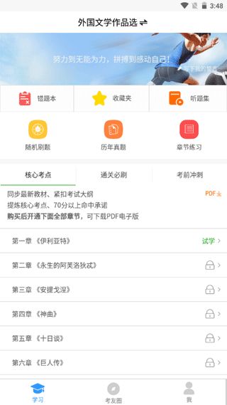 友app是一款专为成人自考考生打造的学习辅助软件。它针对不同自考专业提供精准的课程内容,通过系统化的学习方案帮助考生高效提升成绩。软件内置随机刷题、历年真题和章节练习三大核心功能,让用户能够全面掌握考试要点。独特的"考友圈"社区功能,让考生可以分享备考经验,与志同道合的伙伴互相鼓励。此外,软件还提供精心整理的核心考点资料,帮助考生抓住重点,实现事半功倍的复习效果。